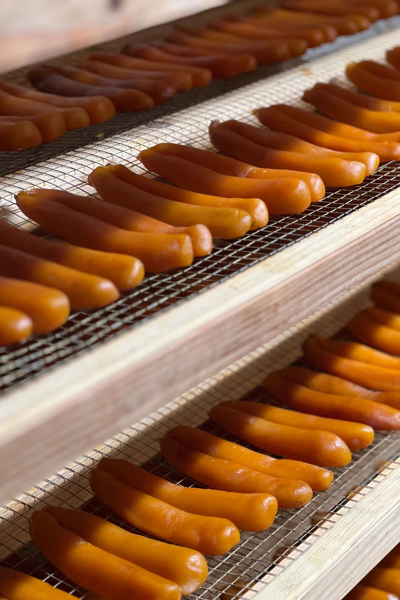 Marinella et Joseph passent de l’idée aux premières expérimentations. Marinella s’appuie sur l’enseignement reçu en Sardaigne, auprès de sa famille, pour cadrer les gestes et les temps : choix des mulets, préparation des poches d’œufs, salage précis, séchage suivi au jour le jour. Joseph structure l’organisation et la méthode. L’objectif est de trouver une régularité : une texture ferme, une coupe nette, un goût marin lisible. Cette phase de mise au point installe une exigence constante sur la matière et sur la maîtrise des étapes qui font la qualité d’une boutargue.